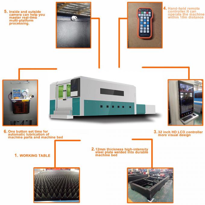 सम्पूर्ण मेसिनले मेशिन उपकरण, गति भागहरू, विद्युतीय उपकरण नियन्त्रण भागहरू, र अन्य सहायता पुर्याउँछ। नियन्त्रण प्रणाली मार्फत तीन अक्ष गति भागहरू सञ्चालन गर्न, त्यसैले यो फाइबर लेजर काटने टाउकोमा ड्राइभ गर्न सक्दछ एक स्थिर, सटीक, र उच्च वेग गतिशील; एक्स र वाई अक्ष मूल प्याकेजिंग उच्च गुणस्तर र सटीक HIWIN रैखिक गाईड रेलको साथ आयात गरेर अपनाईन्छ, वर्किंग टेबुल स्क्वायर पाइपले समग्र मेसिनलाई वेल्डिंगमा तनावमुक्त पार्छ, एनीलिंग उपचार, मेसाको अधिकतम लोड-बेयरिंगले K०० केजी पाउन सक्छ, यो पनि प्रसारणको शुद्धता सुनिश्चित गर्न विश्वव्यापी बल असर, मेसिन बाह्य सेट परिधीय क्ल्याम्पि device उपकरण, पूर्ण संलग्न धुलो प्रूफ उपकरण, फोटोइलेक्ट्रिक सेन्सर, र अन्य सटीक स्थिति भागहरू प्रयोग गर्दछ।